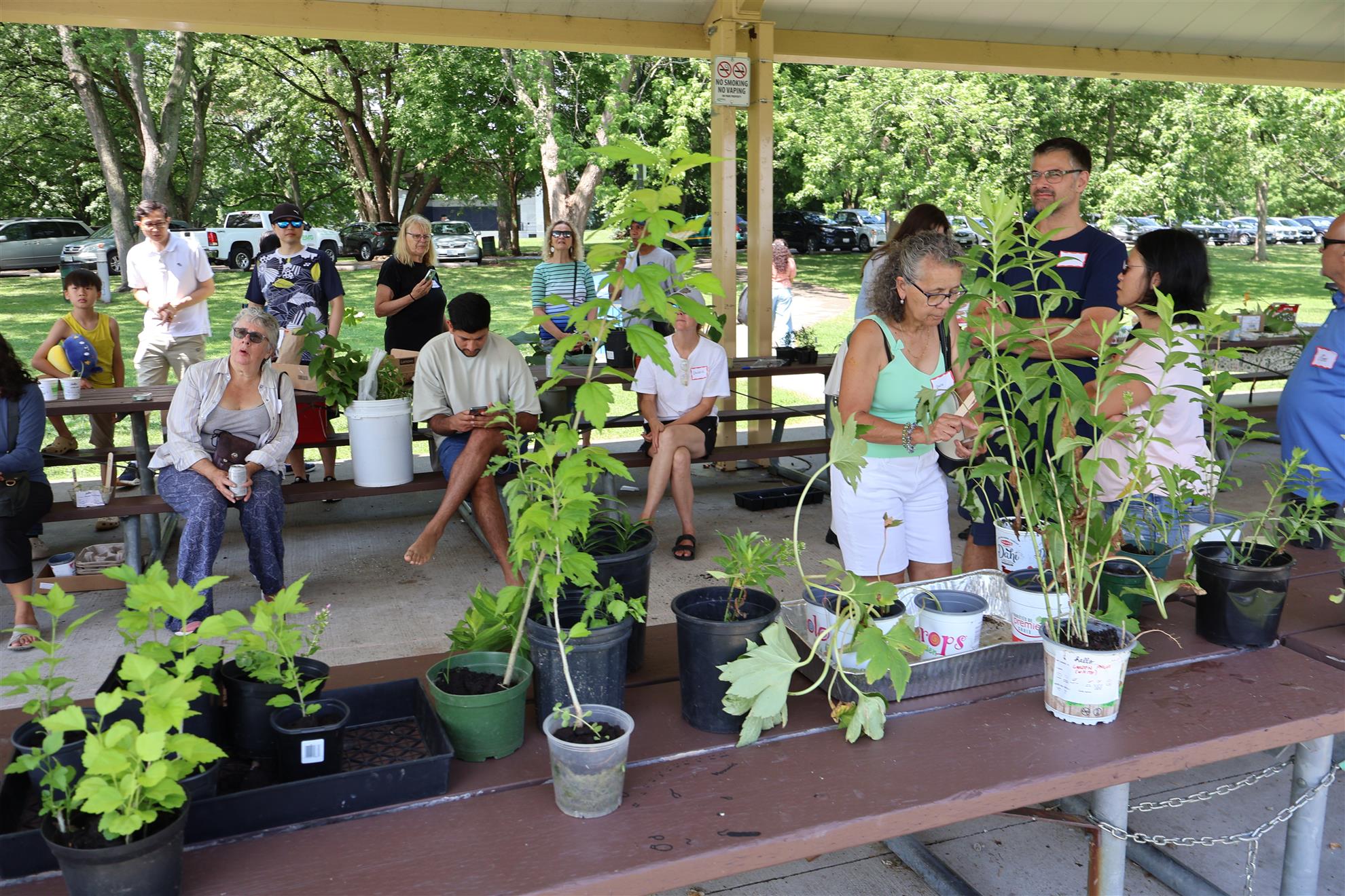 The day started with a downpour, and by noon, it was a bright sunny day. Organising team from Rotary Passport South 7080 arrived as early as 8:30 am to begin setup and labeling the plants already procured for the event. Gradually, as attendees trickled in due to the morning rainfall, the plants they brought for swapping were tagged, and the attendees were given popsicle sticks to indicate the number of plants they could take back.